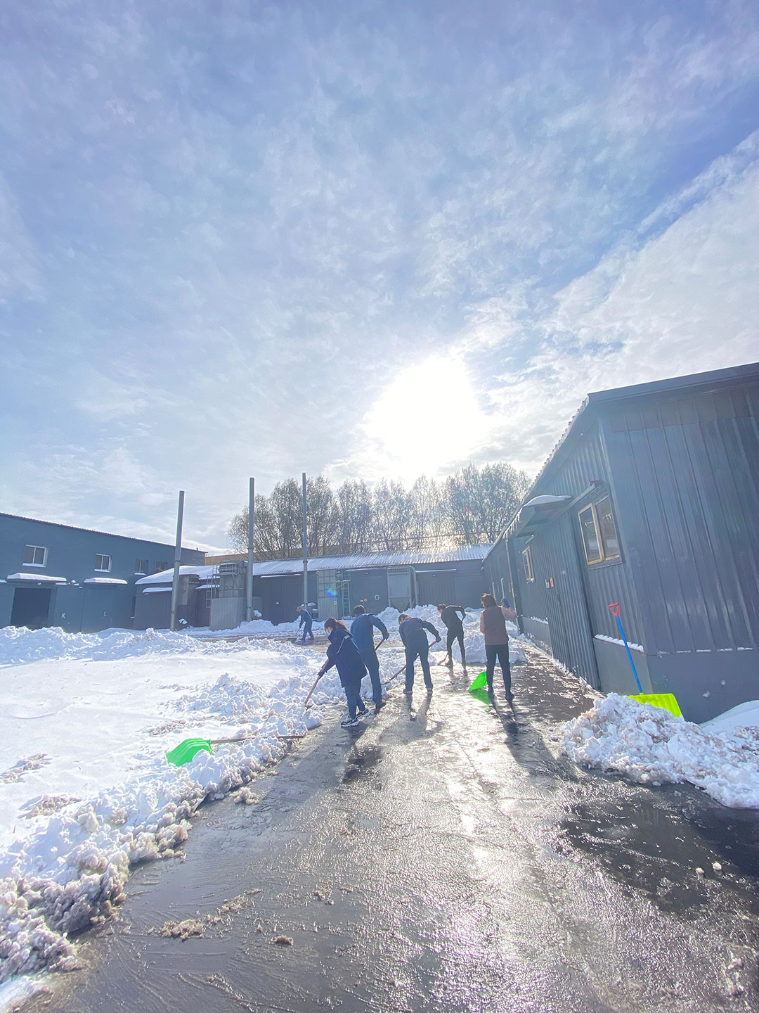 公司組織全體員工開展積雪清掃活動(dòng),員工們不畏嚴(yán)寒,積極參加,紛紛拿起鐵鍬和掃帚,一點(diǎn)一點(diǎn)地將積雪集中堆放。整個(gè)掃雪過程中,大家配合默契,干的熱火朝天,不亦樂乎,忙碌的身影構(gòu)成了一道亮麗的風(fēng)景線。