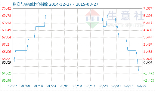3月27日焦炭與鎢鐵比價(jià)指數(shù)為64.52